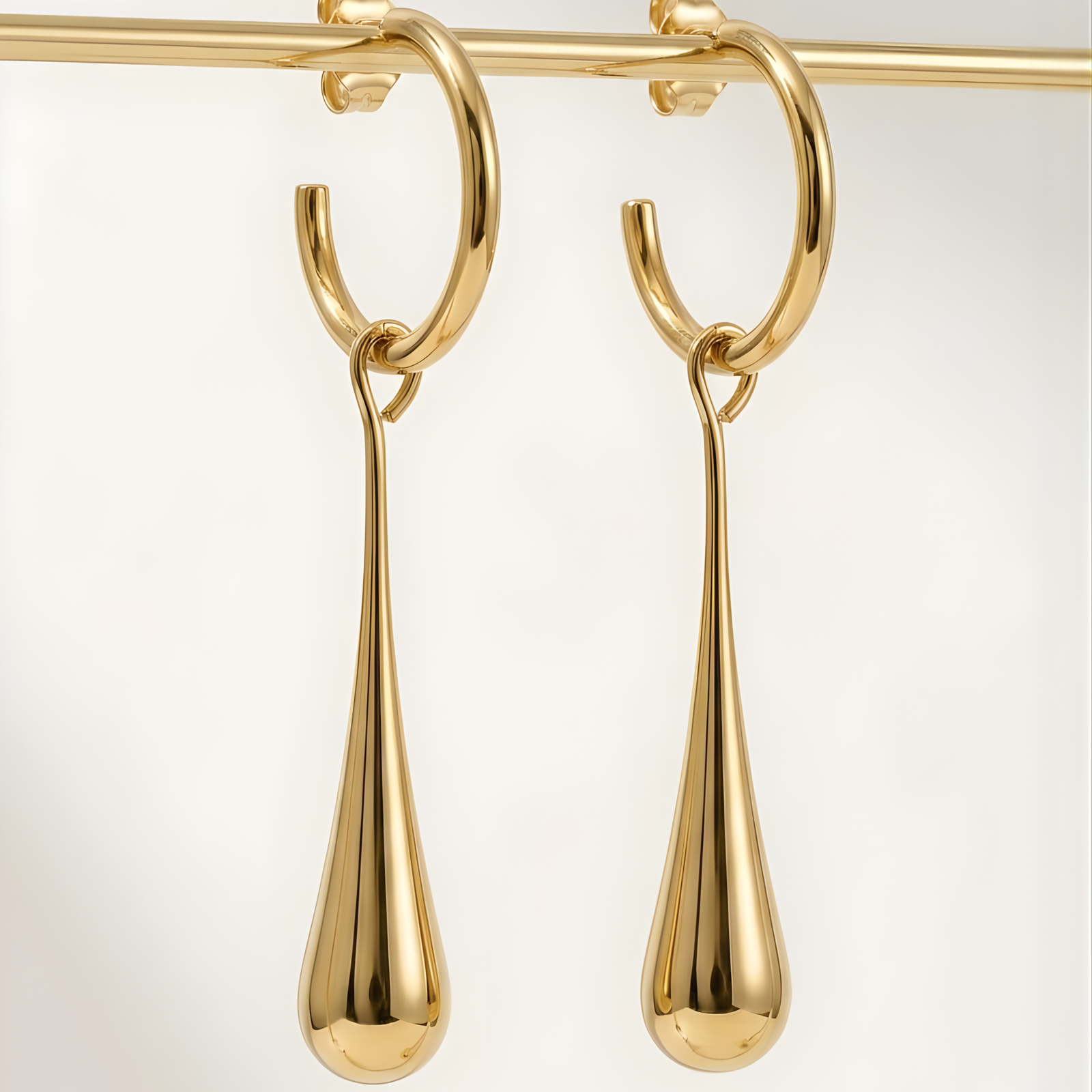 Elevate your everyday style with our stunning 18k Gold Plated Teardrop Earrings. Featuring a unique fusion of a classic hoop and a high-polish teardrop charm, these earrings offer a sophisticated minimalist aesthetic that transitions perfectly from office wear to evening events.