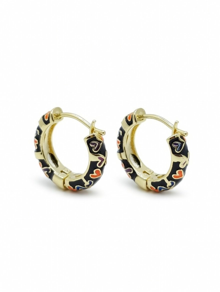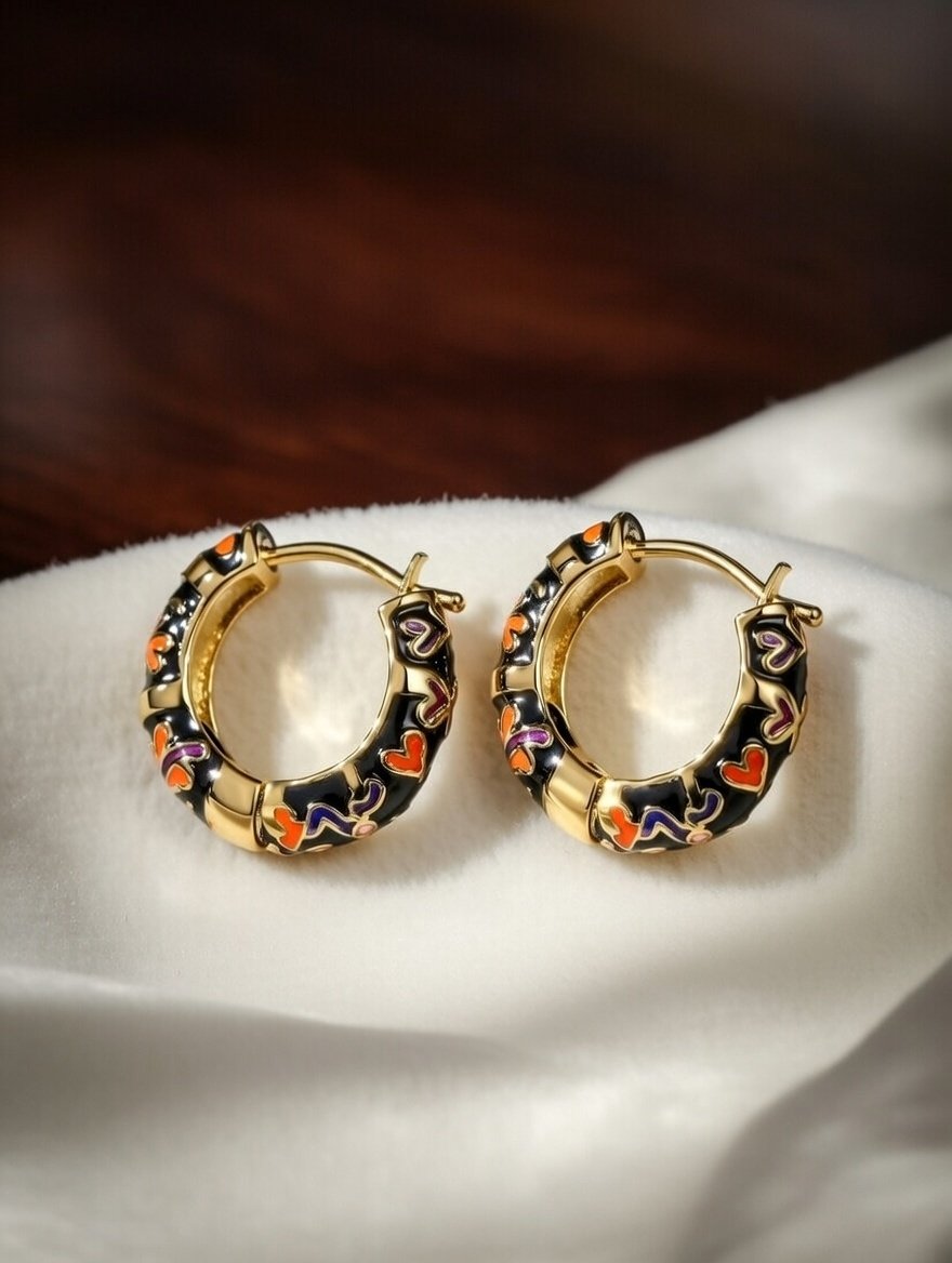 • Vibrant Enamel Detailing – Black enamel base adorned with multicolor heart patterns for a bold, artistic touch.