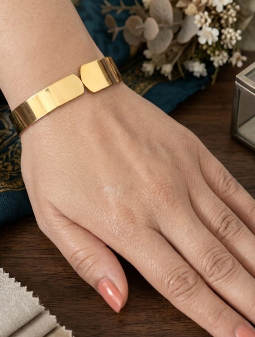 The Celestial Starburst Kada is more than just a beautiful accessory. It is built to endure the rigors of daily life. We use a premium-grade base metal finished with a rich, multi-layered 18K gold plating. Because we understand that your jewelry should be “life-proof,” this Kada is 100% Anti-Tarnish and Waterproof. Therefore, the golden luster remains vivid even if you apply perfume, wash your hands, or wear it during a busy day out.