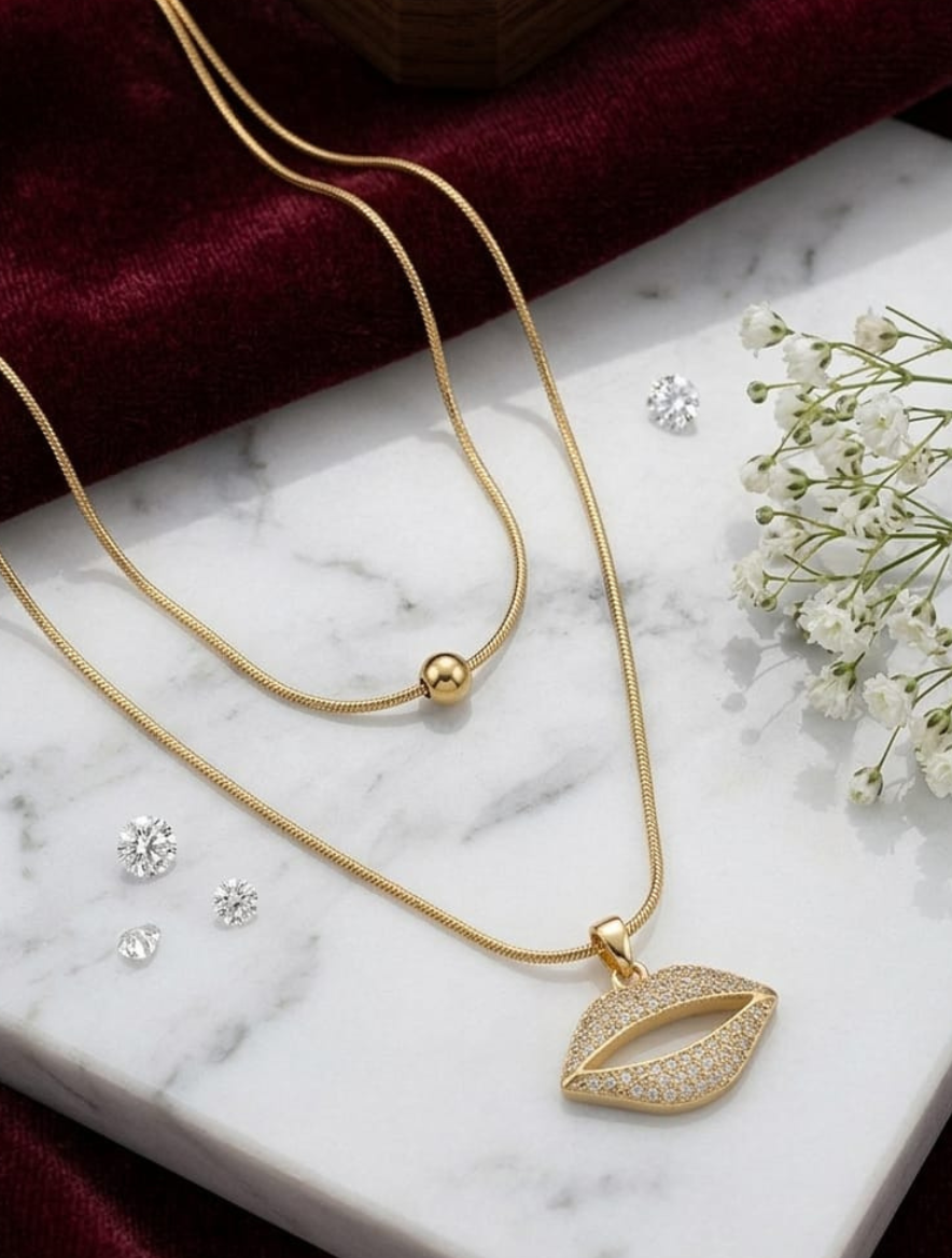 This necklace features a sophisticated double-layered design—a shorter chain with a gold bead and a longer chain holding the lip pendant. It sits perfectly at 18 inches on the collarbone. Made with Skin-Friendly (Hypoallergenic) materials, it is 100% free from Lead and Nickel, ensuring no rashes or irritation even for sensitive skin.