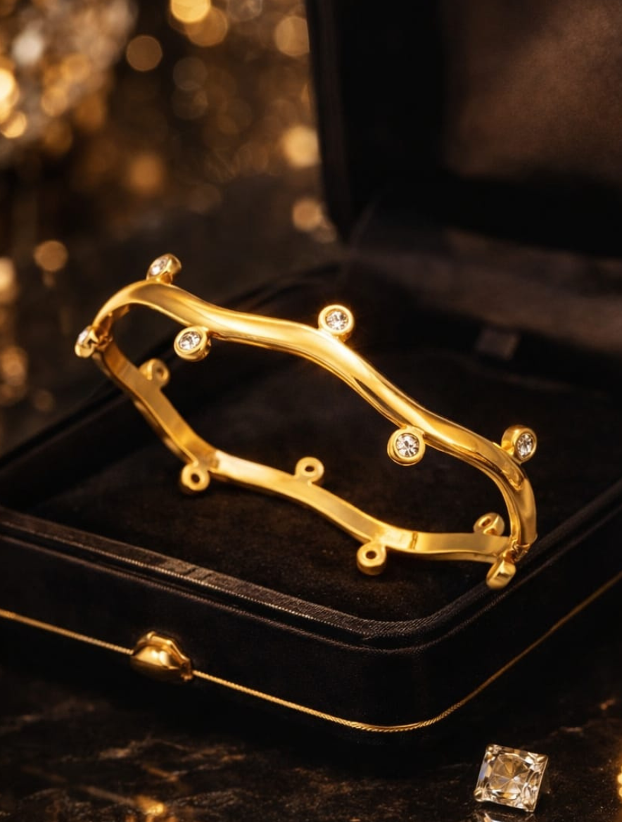 The Diagonal Luxe Grooved Kada is more than just a beautiful accessory; it is built to endure. We use a high-grade stainless steel base finished with a premium 18K gold plating. Because we understand that your jewelry should be “life-proof,” this Kada is 100% Anti-Tarnish and Waterproof. Therefore, you can wear it with total confidence while washing your hands, exercising, or applying daily perfumes, as the golden luster will never fade or turn black.