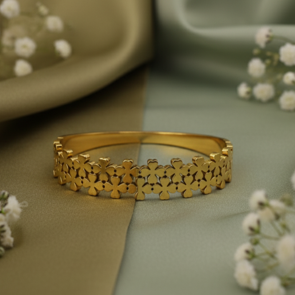 Add timeless elegance to your look with this floral design bracelet. The intricate flower pattern reflects a perfect blend of tradition and modern style. Its glossy finish enhances the overall beauty, making it suitable for both daily use and special occasions. A perfect choice to elevate your jewelry collection or gift someone special.