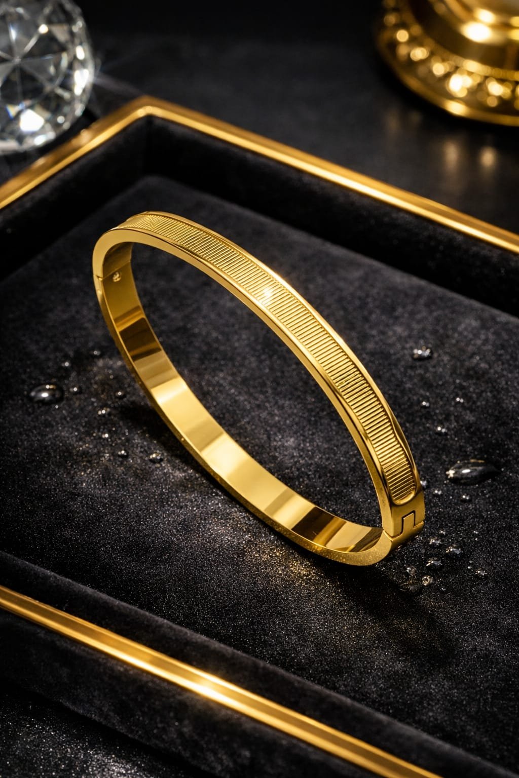 At Just Jewel, we prioritize your skin’s health. This luxury bracelet is Hypoallergenic, completely nickel-free, and lead-free. It is designed to be skin-friendly, ensuring that even those with the most sensitive skin can enjoy its beauty without worrying about rashes or irritation. The hidden side-hinge clasp mechanism provides a seamless appearance on the wrist while offering a sturdy and reliable closure that is easy to operate with one hand.