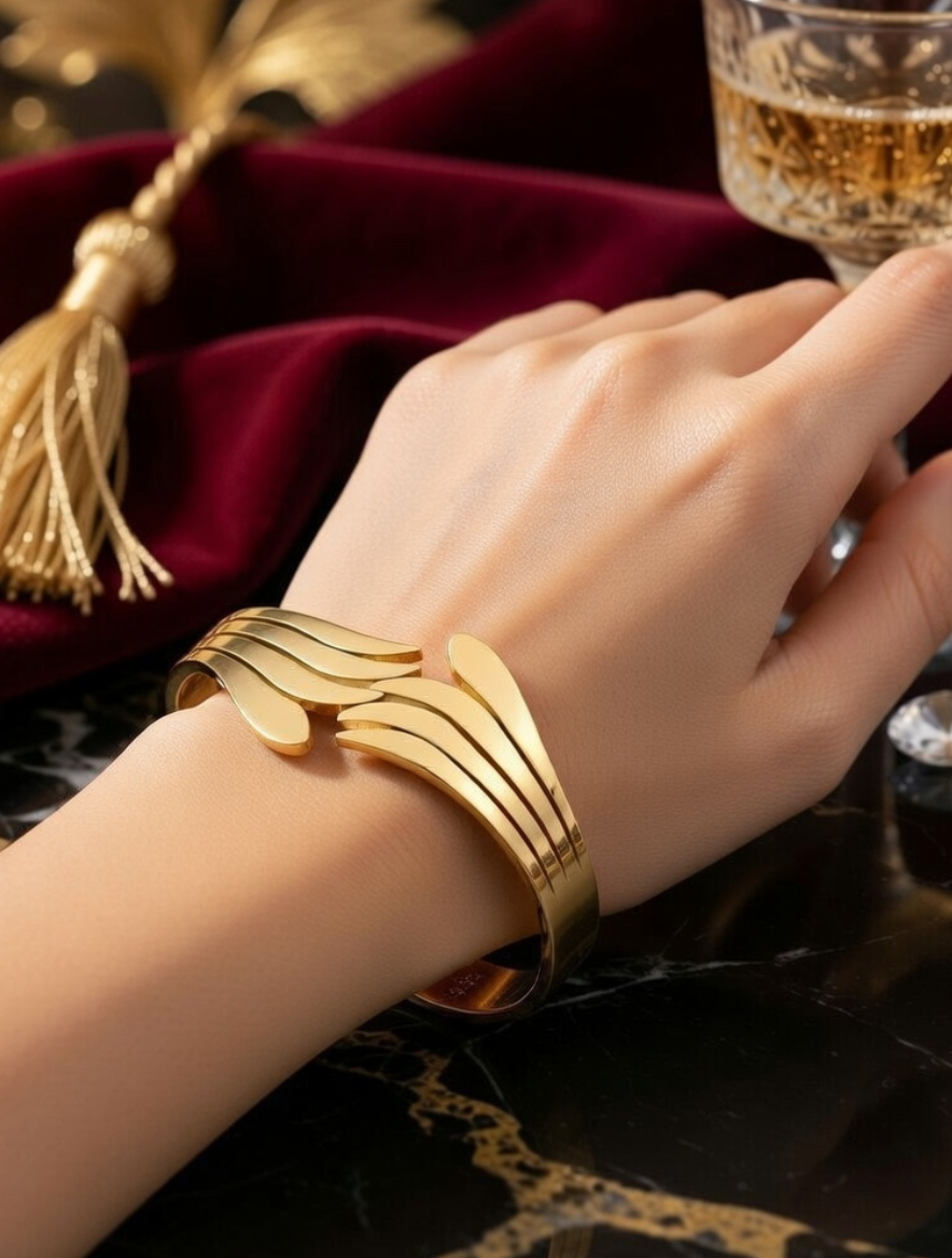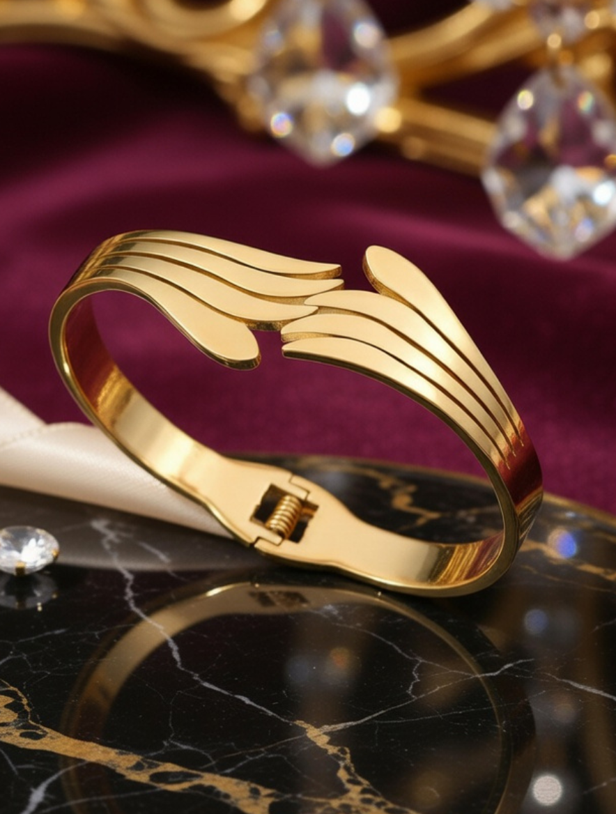This luxury charm bracelet is more than just a fashion statement. It is a high-quality accessory built for the modern woman. We use a premium base metal finished with a rich, multi-layered 18K gold plating. Because we know you want jewelry that lasts, this Kada is 100% Anti-Tarnish and Waterproof. Therefore, you can wear it throughout your daily routine, whether you are washing your hands or applying perfume, without worrying about the golden luster fading.