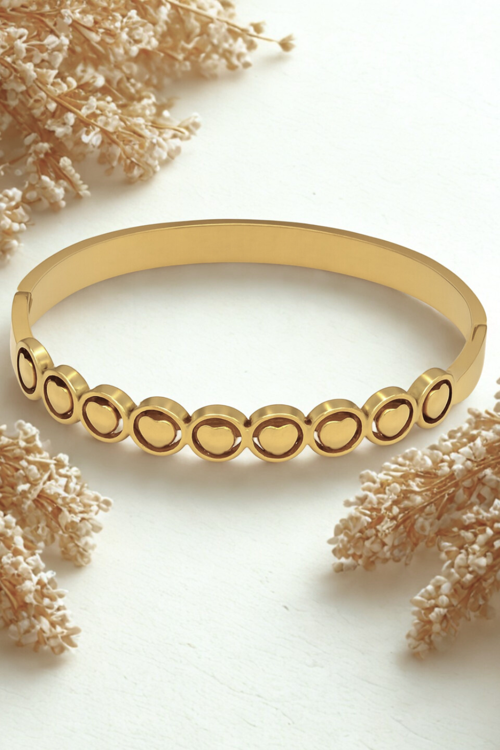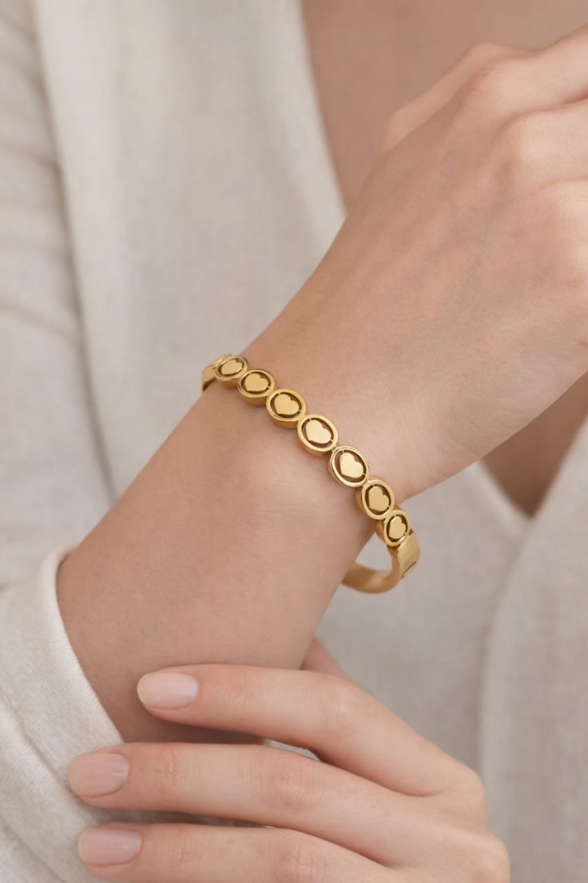 Gold Bangle Bracelet for Women with Heart Motifs – Elegant Circular Design