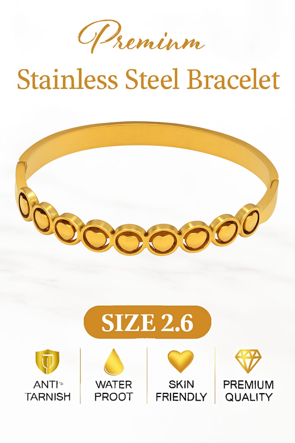 Be the first to review “Gold Bangle Bracelet for Women with Heart Motifs – Elegant Circular Design”