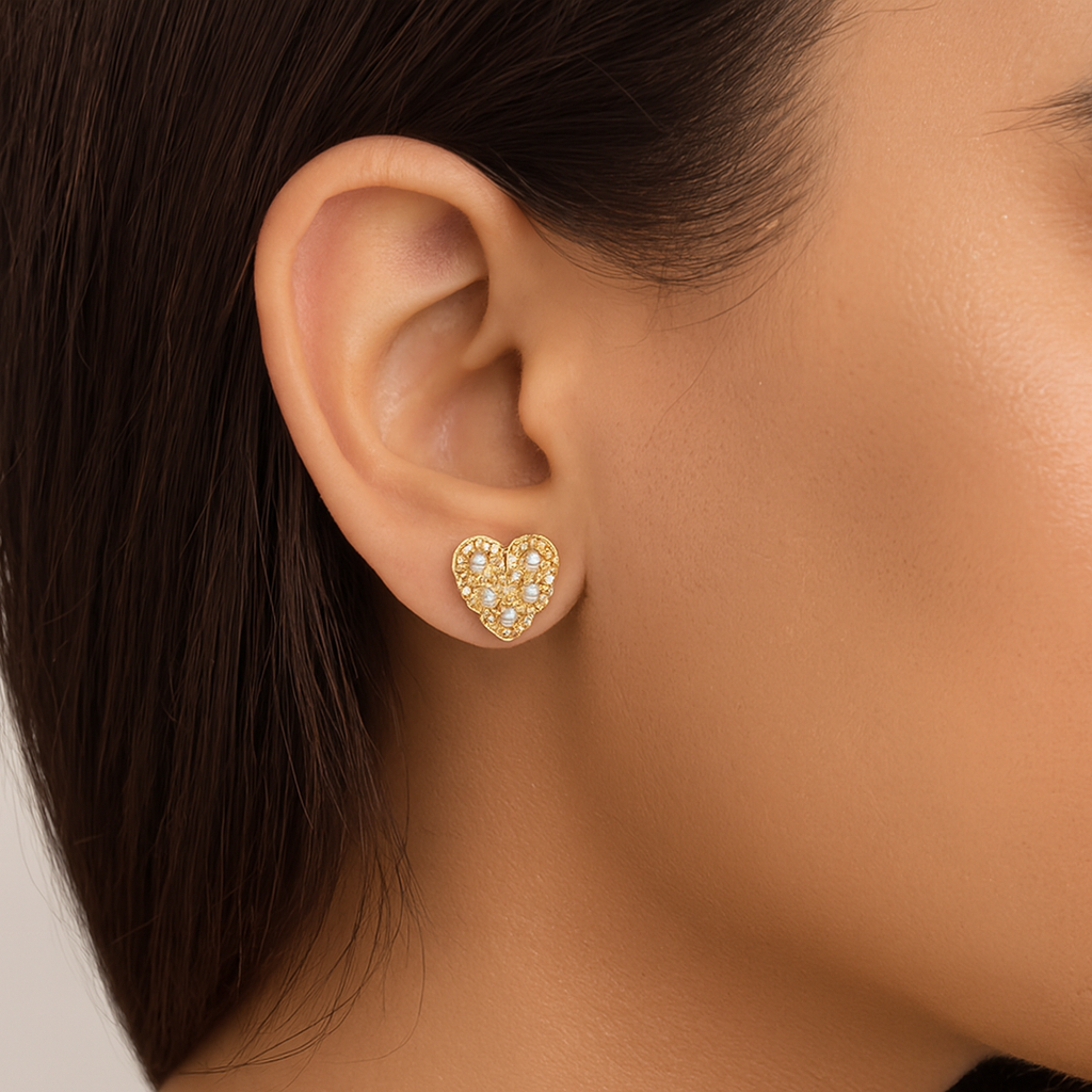 “Golden Pulse” – Textured Heart Studs with Diamond Accents