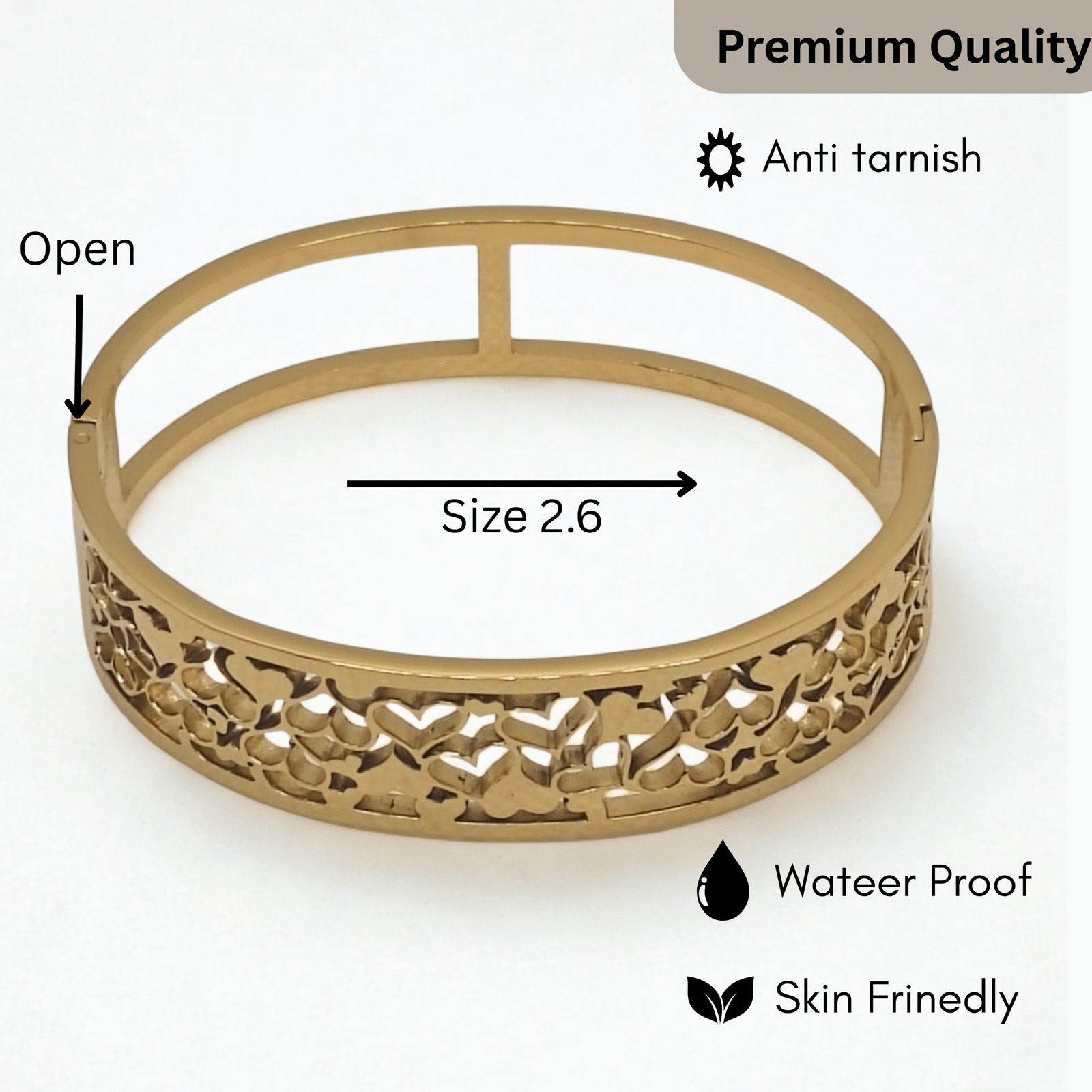Crafted in rich gold tone, this structured bangle is a statement of elegance—perfect for festive wear, heartfelt gifting, or adding a touch of warmth to your everyday look.