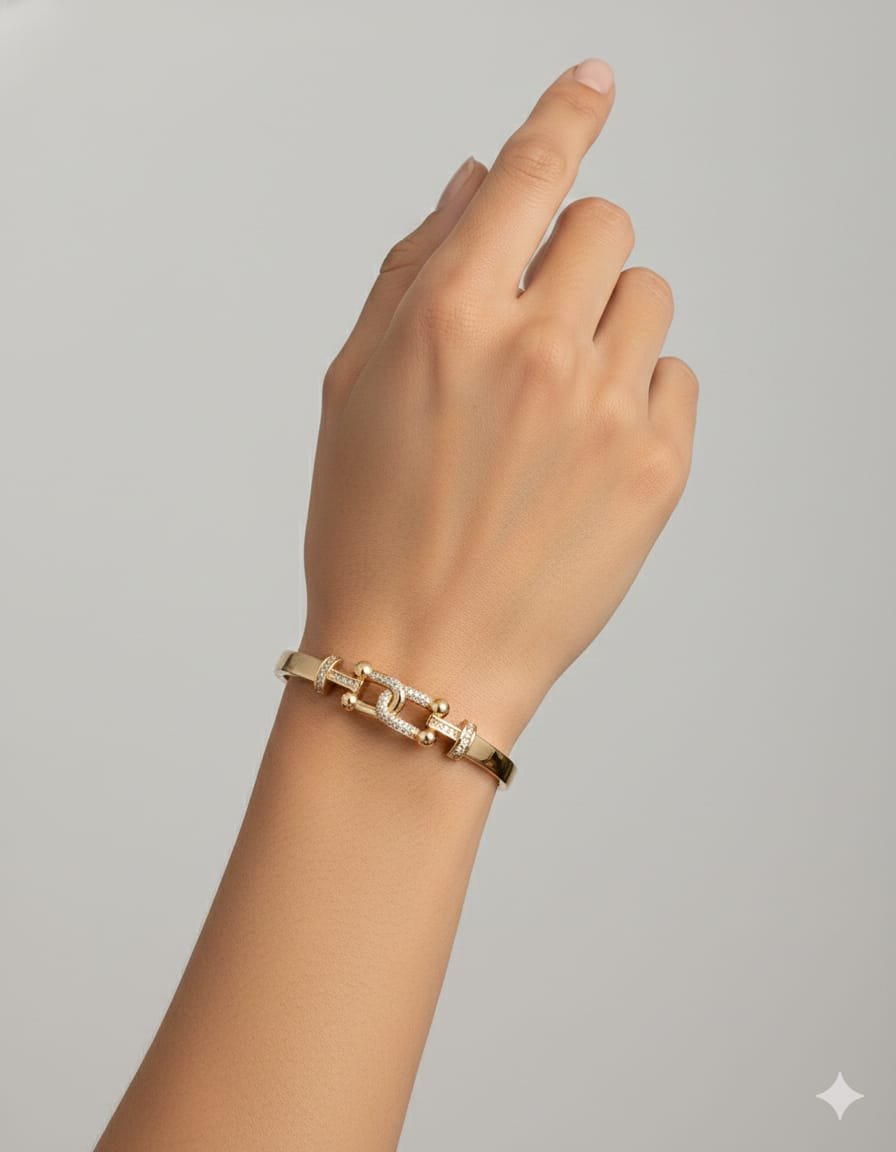 Luxury Industrial Link Kada Bracelet – 18K Gold Plated 316L Stainless Steel with Pave Crystals