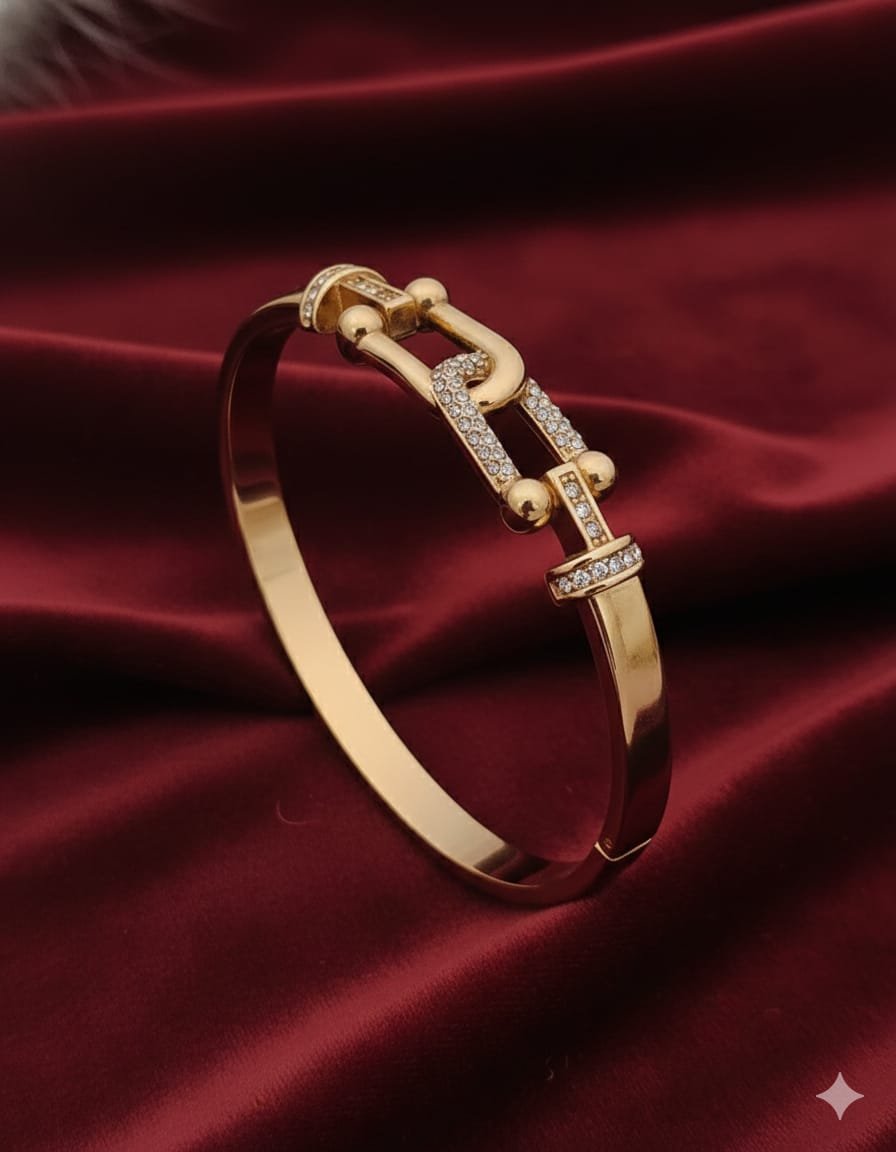 Romantic Heart & Crystal Kada – 18K Gold Plated Kada Luxury Bracelet