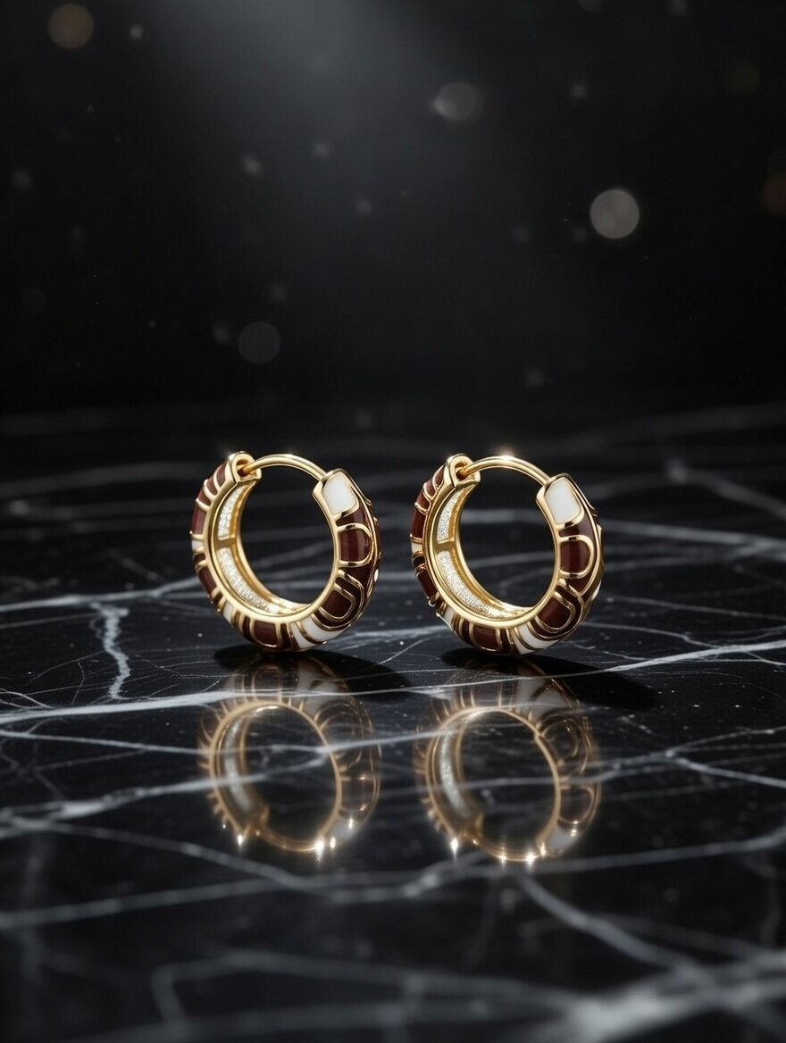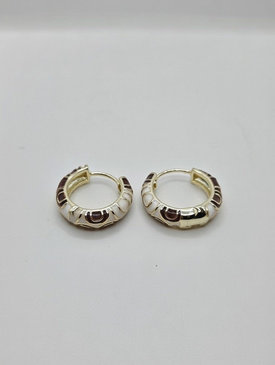Elevate your style with the Mocha Swirl Hoops, where artistry meets elegance. These gold-toned earrings feature a graceful interplay of white and deep brown enamel in a symmetrical, curved pattern that evokes the richness of mocha and cream. Their refined design makes them a versatile accessory — perfect for both casual outings and formal occasions. Lightweight, secure, and effortlessly chic.