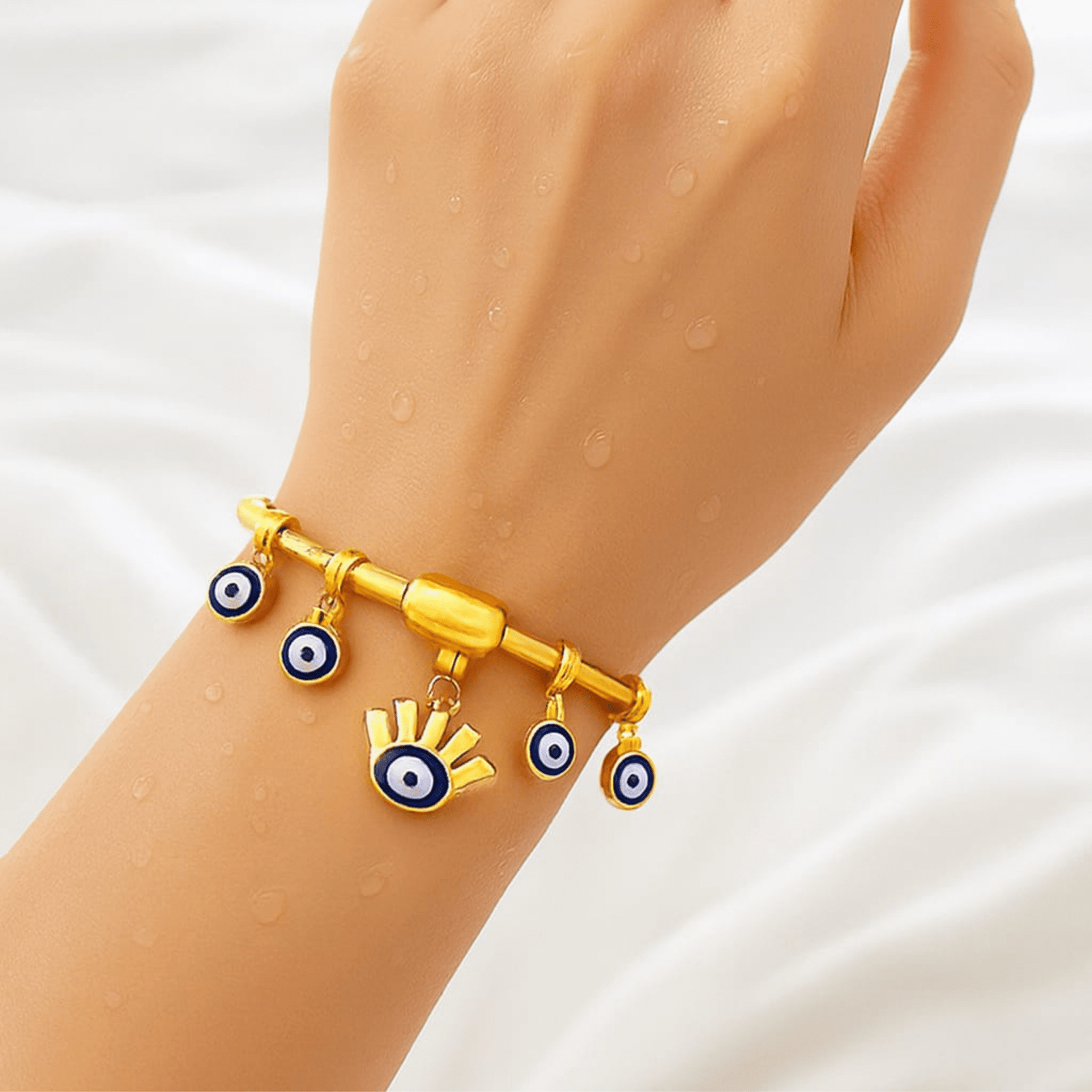 • 🧿 Evil Eye Charm Bracelet – Five symbolic charms for protection and positivity