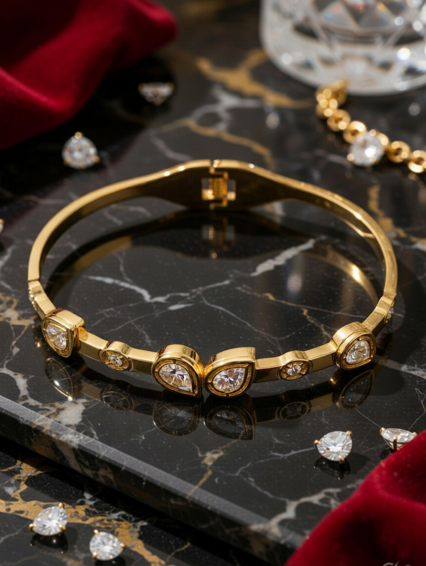 Experience the perfect blend of luxury and durability with our exquisite Pear Drop Gold Bracelet. Designed for the modern woman who values both style and substance, this stunning piece is more than just an accessory—it’s a statement of elegance. Whether you are heading to a business meeting, a casual brunch, or a grand evening celebration, this Pear Drop Gold Bracelet adds a sophisticated touch to any outfit.