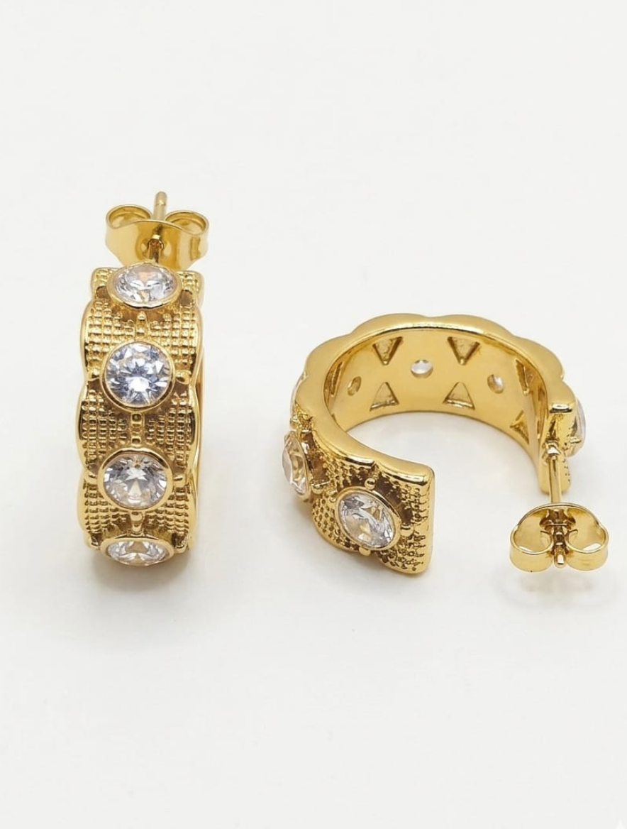 Step into a world of timeless luxury with the Just Jewel Royal Textured Gold Hoop Earrings. These earrings are designed for the woman who loves bold, statement jewelry with a vintage touch. Each hoop features a rich, intricate cross-hatch texture that mimics the look of high-end handcrafted gold. Adorned with brilliant, bezel-set crystals, these earrings provide a captivating sparkle that is both elegant and substantial. The wide-band design offers a “Royal” aesthetic, making them the perfect accessory for festive occasions, weddings, or whenever you want to feel extra special.