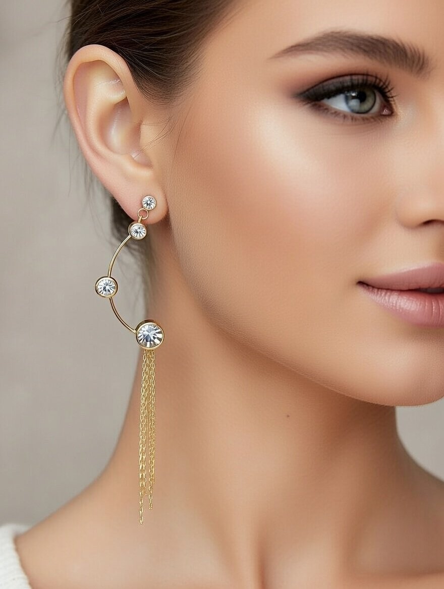Unlike traditional studs or hoops, these crystal waterfall earline hooks provide a high-fashion look without the need for multiple piercings. Crafted from premium 316L Stainless Steel, they are designed for durability and a secure fit. The 18K Gold PVD Plating ensures a deep, rich luster that stays bright and vibrant, making them look like expensive fine jewelry.