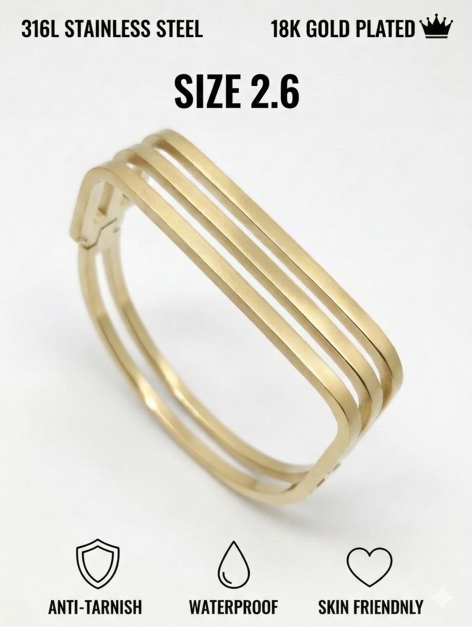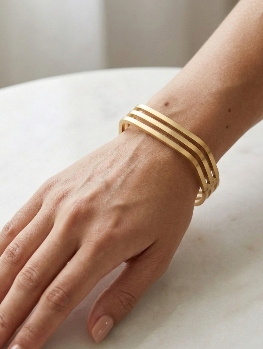 Quality is at the heart of every piece we create. This Triple Bar Cuff Bracelet is meticulously engineered using high-grade 316L Stainless Steel, renowned for its incredible strength and durability. To achieve that luxurious, sun-kissed glow, we apply a thick layer of 18K Gold Plating. The result is a stunning satin and high-polish finish that mimics the look of solid gold while offering the resilience of industrial-grade steel.